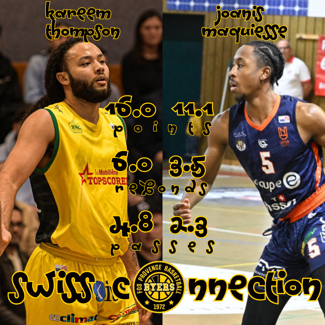Les BYers ont également réalisé deux bonnes pioches dans le championnat suisse. Joannis Maquiesse a été formé à Fribourg où il a alterné entre l'équipe réserve et le groupe pro. Il a ensuite rejoint Neuchâtel où il n'a cessé de progresser en améliorant ses statistiques : 11.1 points, 3.5 rebonds et 2.3 passes pour l'arrière de 22 ans.