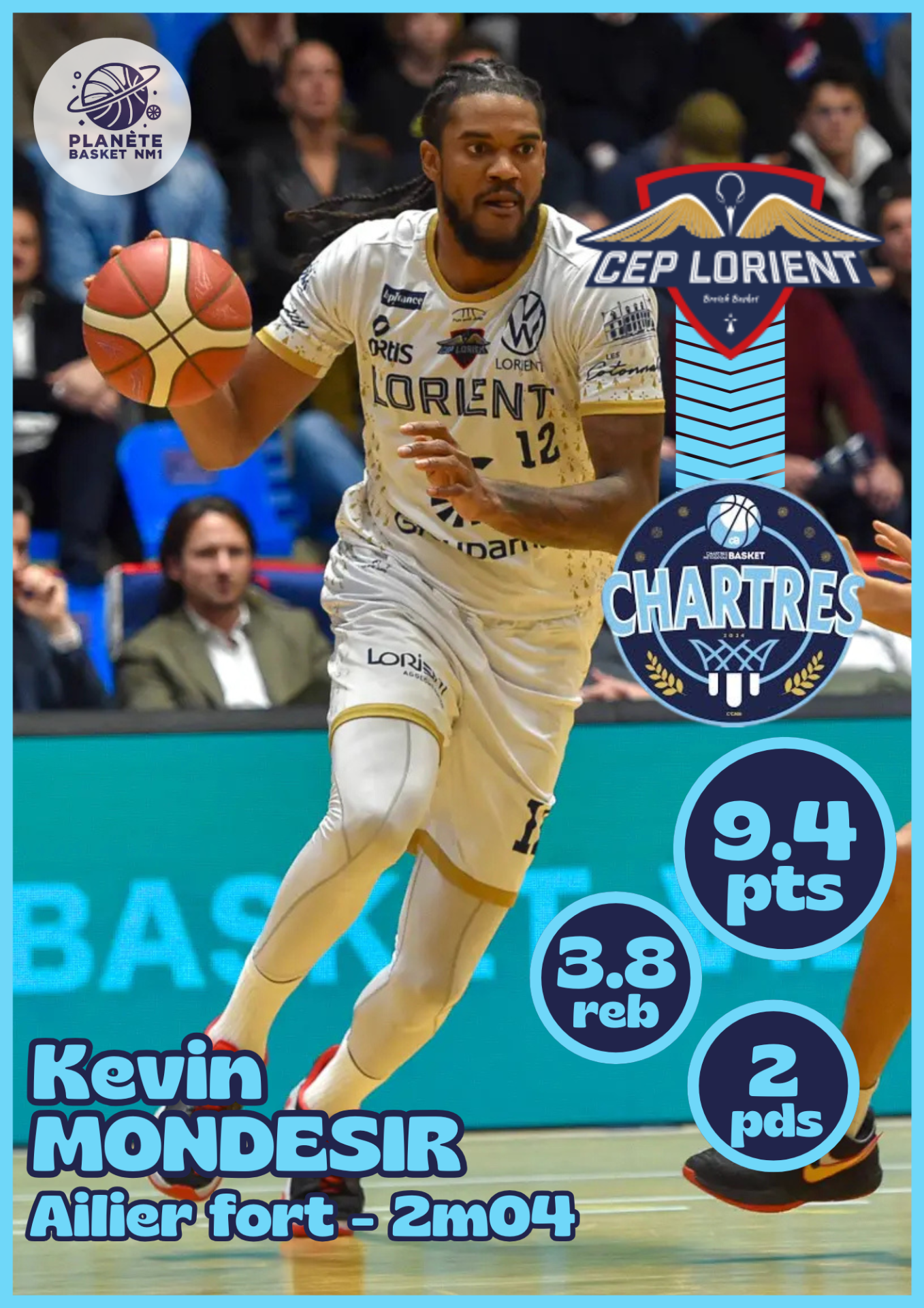 A l'intérieur, Chartres a fait un gros coup en ramenant Kevin Mondésir. L'ailier de 2m04 a débuté sa carrière en Nationale 1 dès 2007 avec le Pôle France et amènera toute son expérience à la raquette du CCBM.