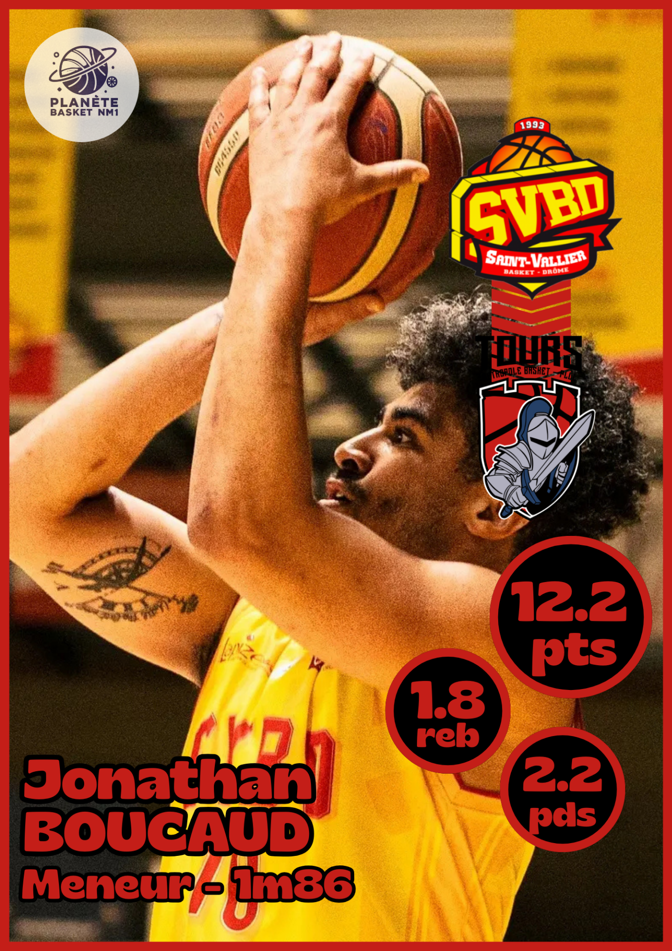 Au poste de meneur, Tours a fait appel à Jonathan Boucaud. Le baroudeur continue son tour de France ; après Aubenas, Avignon, la Rochelle, Pont-de-Chéruy, Besançon, Tarbes et Saint-Vallier, le snipper de 30 ans rejoint donc le TMB.