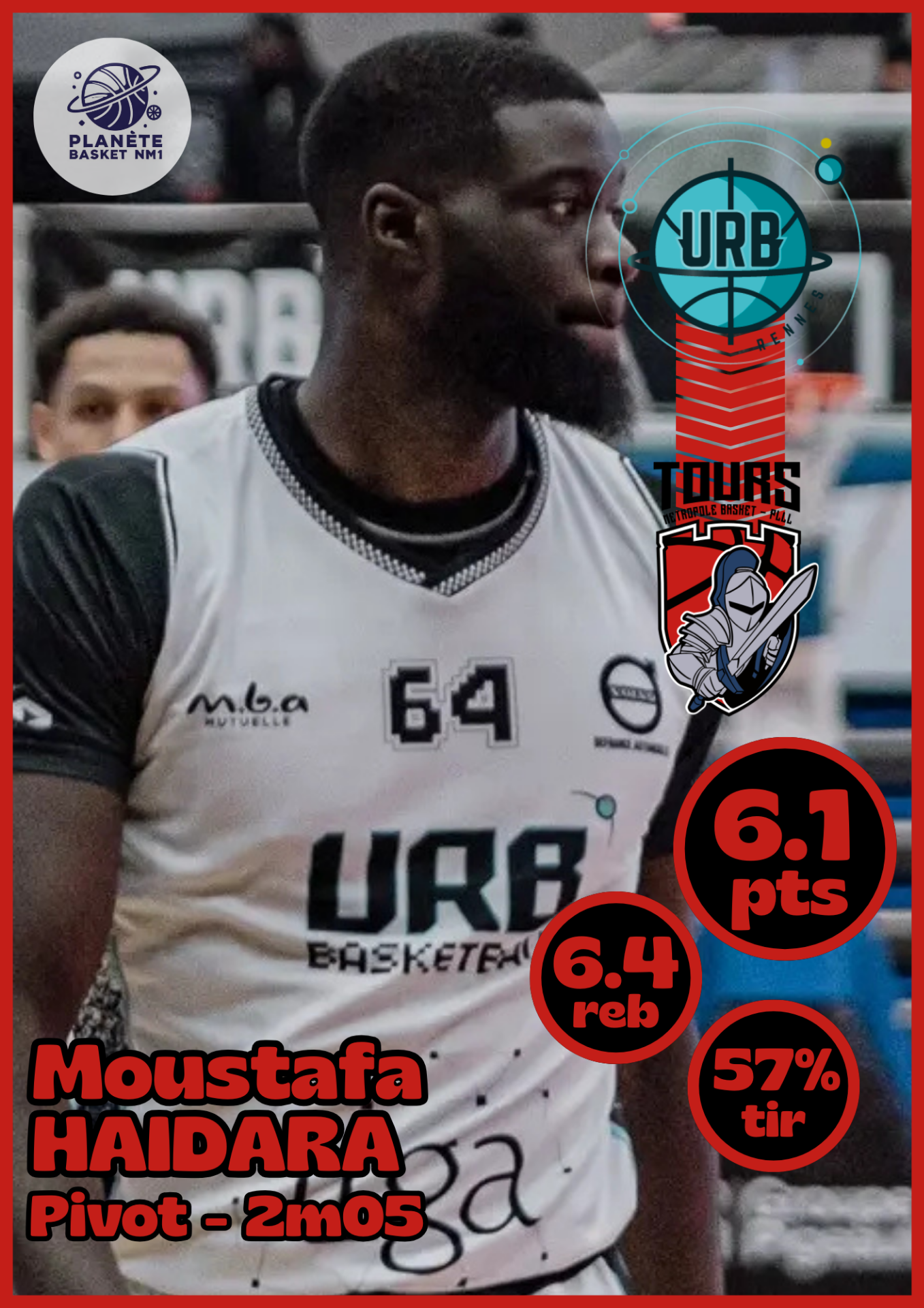 Moustapha Diop, lui aussi formé au STB Havre, rejoint l'Indre-et-Loire en provenance du Pays de Fougères. L'ailier fort de 22 ans a fait preuve d' efficacité (7.3 points et 3.4 rebonds) en sortie de banc (moins de 15 minutes). Comme Gibey et Haidara, il aura sûrement plus de responsabilités lors de l'exercice à venir.