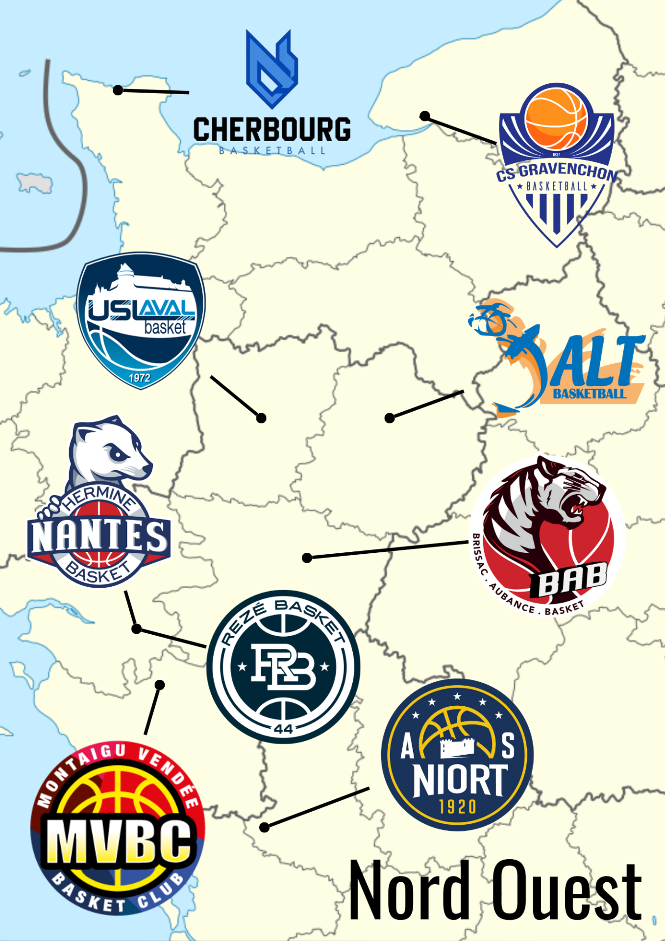 C'est la poule qui va, malheureusement, le moins bénéficier de cette réorganisation en Nationale 2. Il faut dire que le Nord Ouest est une partie de la France avec peu d'équipes dans cette division. Aucune équipe bretonne, seulement deux en Normandie et six dans les Pays de la Loire.